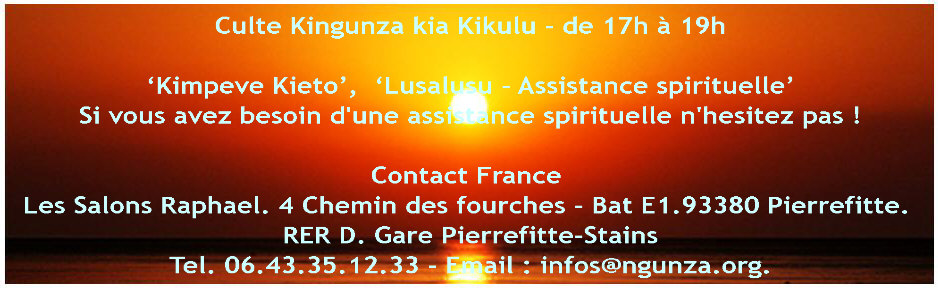 « Le développement spirituel d'un individu exige la maîtrise de sa nature inférieure par sa nature supérieure, la fameuse fusion du rayon et du soleil. C’est un processus d’asservissement de notre personnalité à notre moi divin, notre mbongi ya kimpeve mu muntu, afin que la lumière de l’ange solaire, tezo kia mbumba mu muntu, domine celle de la personnalité, que l’autre nous-même, devienne notre moi. Ce qui vaut pour un individu, vaut pour un groupement humain. En fait, Bala ba Mâ Kôngo et Mbanza Kongo doivent être en alignement avec Mbanza Kongo ya mazulu, Nsinda Mpandu, la Demeure de Muanda Kongo, Mfumu Mpandu, Mfumu ya Nsinda Mpandu.» L'ouvrage "Kingunza ni nki ?" publié par Mfumu Mpu,disponible sur le lien ci-dessus, est une superbe introduction au Kingunza en tant qu’elle expose clairement la problématique de l’'évolution spirituelle optimale du khemite, selon une voie initiatique authentique. »