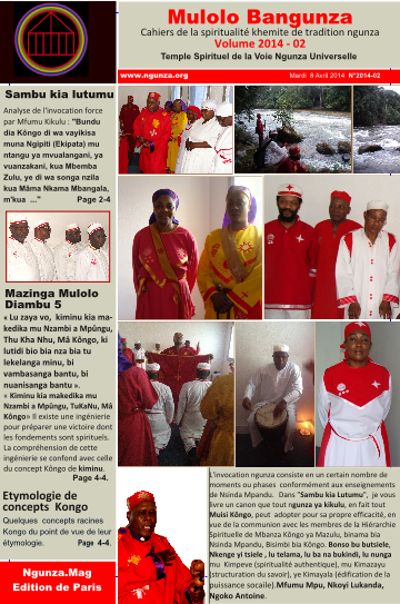 Volume 2011-01:Prophétie centrale Numéro "Un" de Mulolo ba Ngunza, "Ngunza.Mag". Il contient la prophétie centrale des bena kongo.»